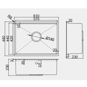 | GS11.61D | 1 | D610*R480*S230 | 570*420 | Âm bàn đá | 570*440 |