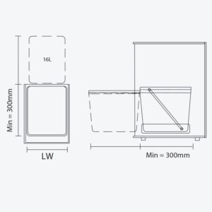 Thùng rác đơn 16L, KT mặt cánh ≥ 400mm GW03.16