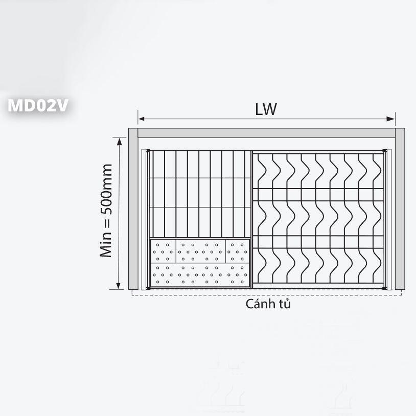 Nhờ cấu tạo chắc chắn và khả năng chịu lực tốt, giá bát đĩa thìa đũa vách hộp MD02V phù hợp lắp đặt trong các tủ bếp kích thước từ 600mm – 900mm. Khay hứng nước thông minh giúp tủ luôn khô thoáng, sạch sẽ. Đây là dòng sản phẩm phụ kiện tủ bếp được nhiều gia đình lựa chọn để nâng cấp và hoàn thiện không gian bếp hiện đại.