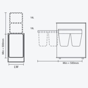 Thùng rác đôi 36L, KT mặt cánh 400mm GW07.40